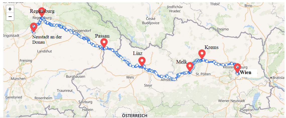 Neustadt,- Regensburg - Straubing - Passau - Inzel - Au Donau- Melk- Krems, (Bécs)