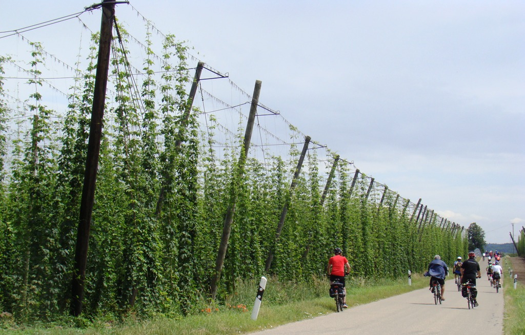 Egyedül ezen a reggelen nem kell sátrat bontanunk és pakolnunk az egész túra alatt, hiszen az e napi szakaszunk Neustadtól kezdődik és Regensburgban ér véget. Ezért reggeli után újra buszra szállunk (sátrainkat, csomagjainkat a regensburgi campingben hagyva) és utazunk felfelé a Duna mentén a bringatúránk kiinduló pontjához Neustadtba. Ez a "bemelegítő" túranapunk, igen sok látnivalóval és érdekességgel kecsegtet. Ilyen pl. a Sitting és Staubing között vezető bringaút, amely a világ egyik legnagyobb egybefüggő komlóföldjén vezet át...