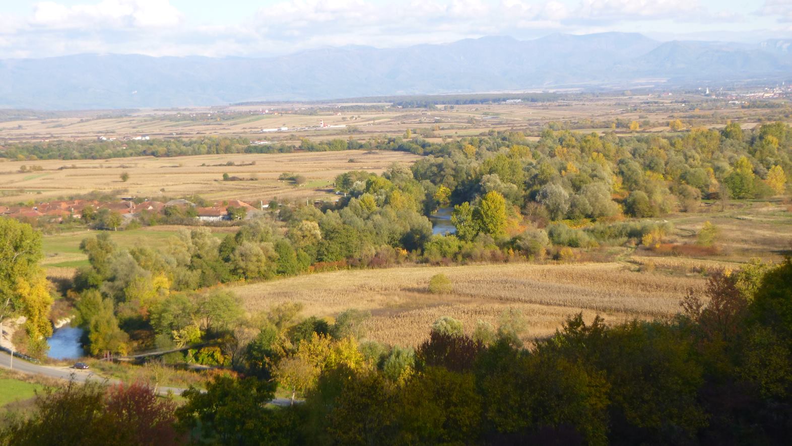 Ennek a Fekete-Körös fölé (kb.200m-re) magasodó tanú hegynek a tetejéről körbe tekintve, mint egy terepasztalként tárul elénk az a vidék melyet aznap bebicikliztünk.