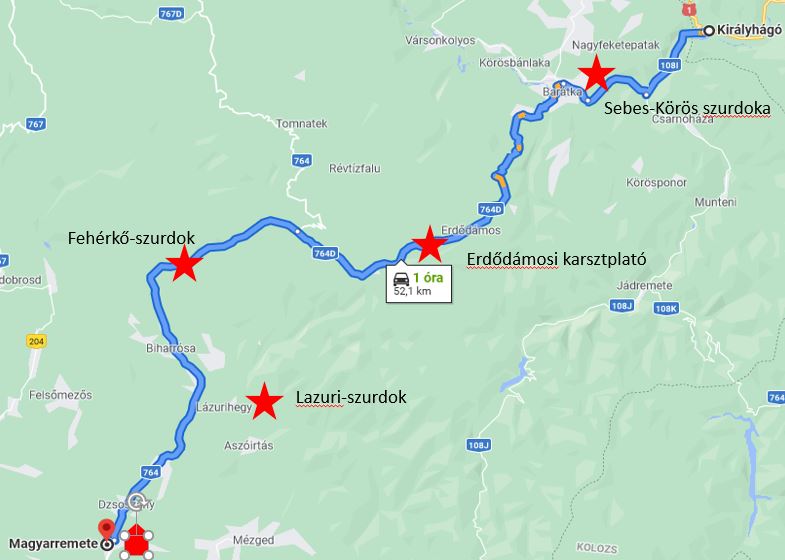 A lepakolása után a Sebes-Köröst kísérő, kisforgalmú úton indulunk el a folyás irányába. Közel 9 kilométert kísérjük a Körös vadregényes szurdokvölgyét. Majd Barátka községnél délnyugatra fordulva megkezdjük 8 kilométeres erős kapaszkodónkat a hegység platójára.