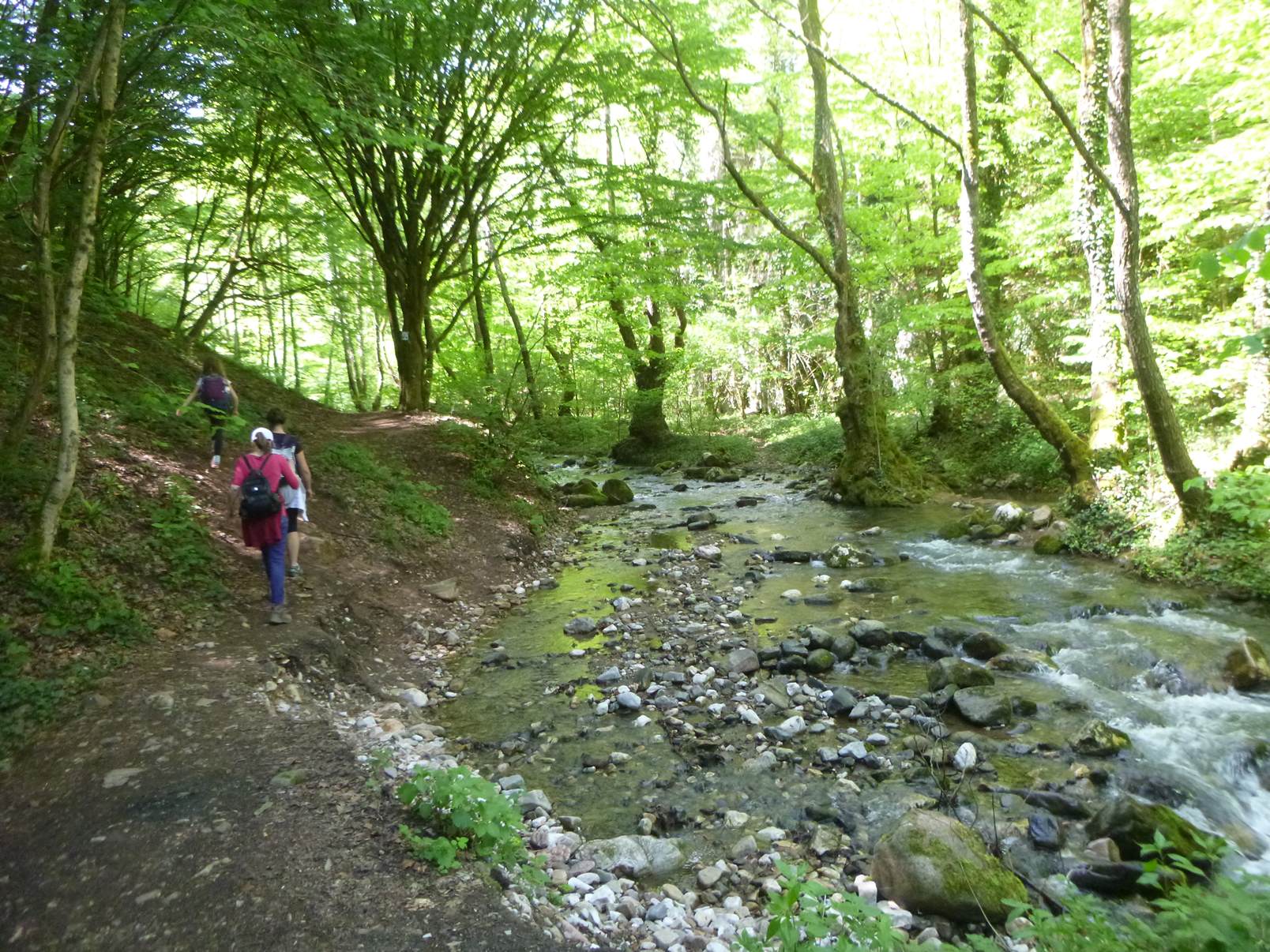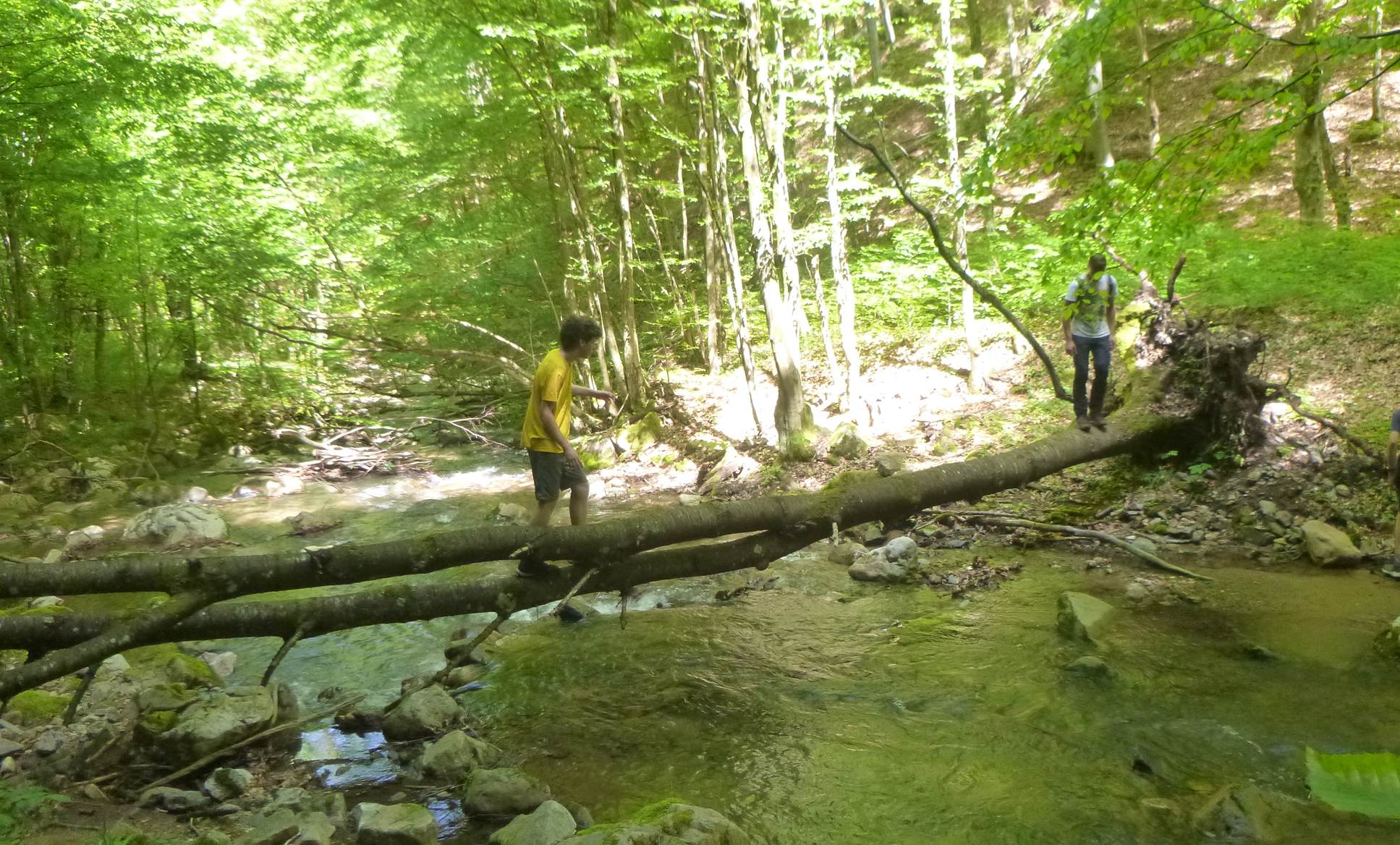A megálló után folytatjuk utunkat a völgyben, mely egyre vadabb formát ölt. Az utolsó kilométereken többször kell átkelnünk a patakon is. Ez kicsi és közepes vízszintnél könnyen megoldható, nagyobb víz, (áradt patak) esetén viszont gumicsizma javasolt. Érdemes hozni azt váltásként és ha nem tűnik esős vizes időnek az időjárás a túra helyszínén akkor a busz aljában is maradhatnak azok az túra végéig. Nem kell cipelni végig.