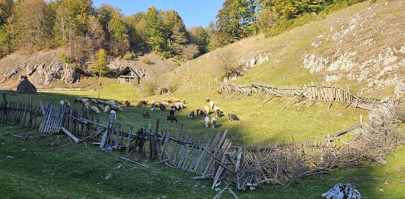 Elhagyatott esztenák, elvadult gyümölcsösök szegélyezik utunkat.