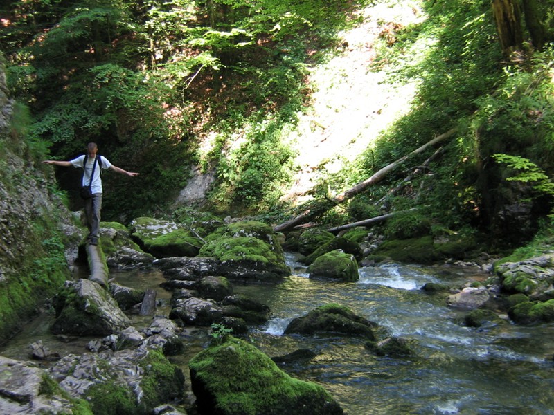 A barlang után megkezdjük erős ereszkedésünket a szurdok felé. Útközben keresztezzük a felső Flóra-rétet és iszunk az alsó rét forrásából. Rövid séta után elérjük a szurdok alsó kijáratát.
