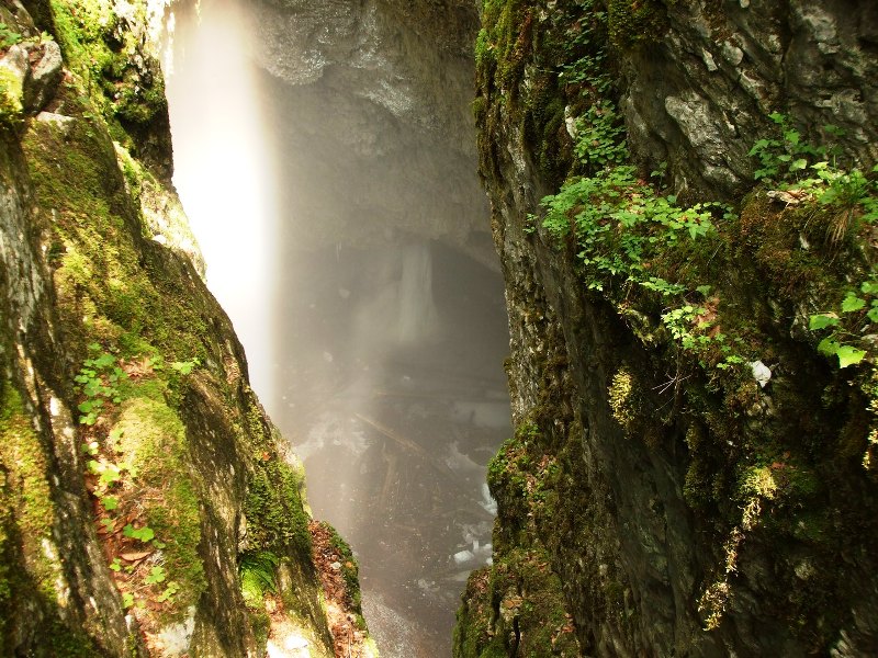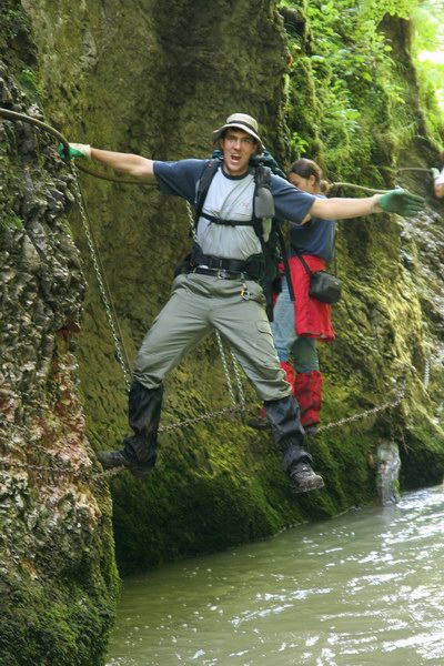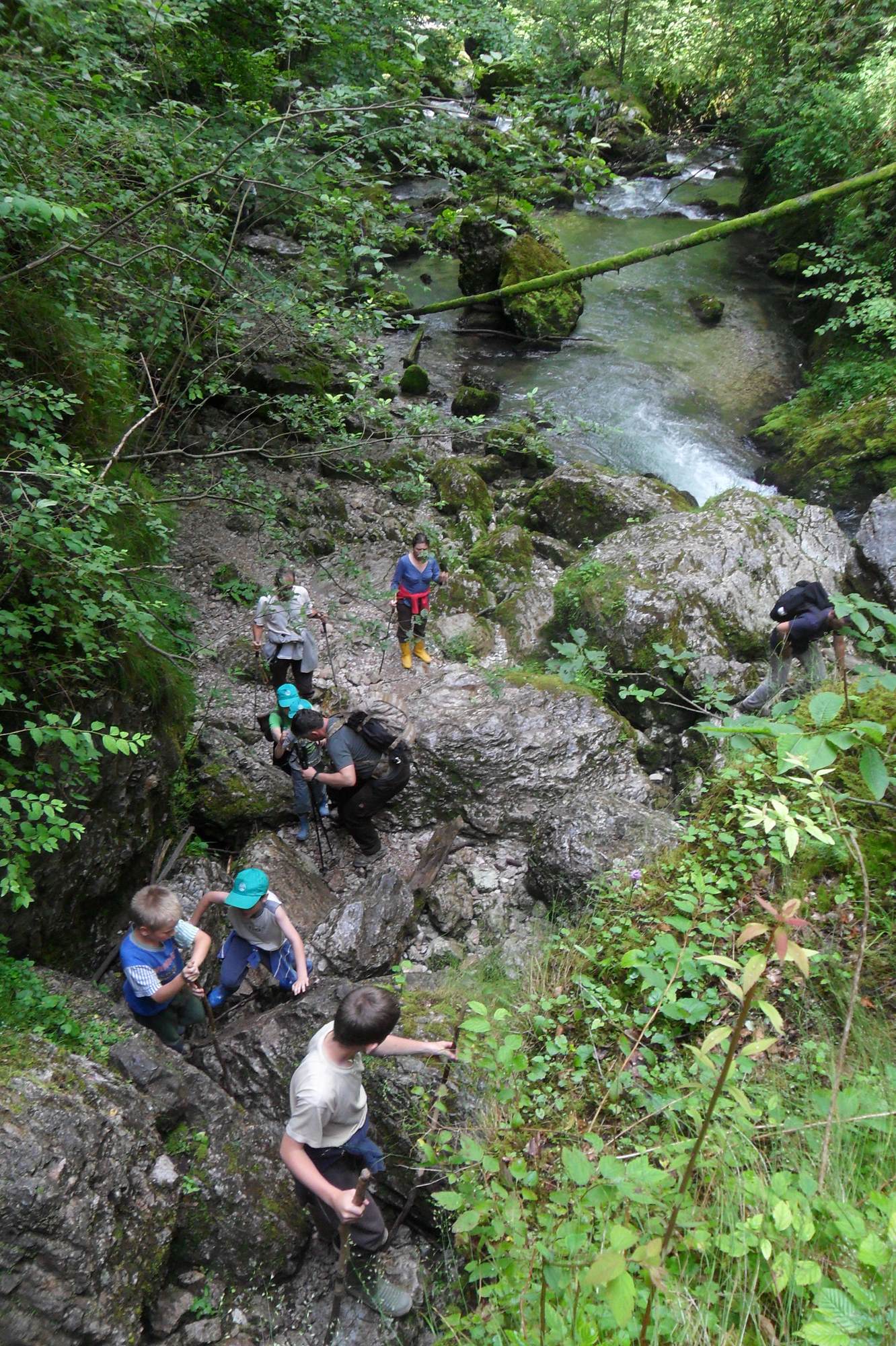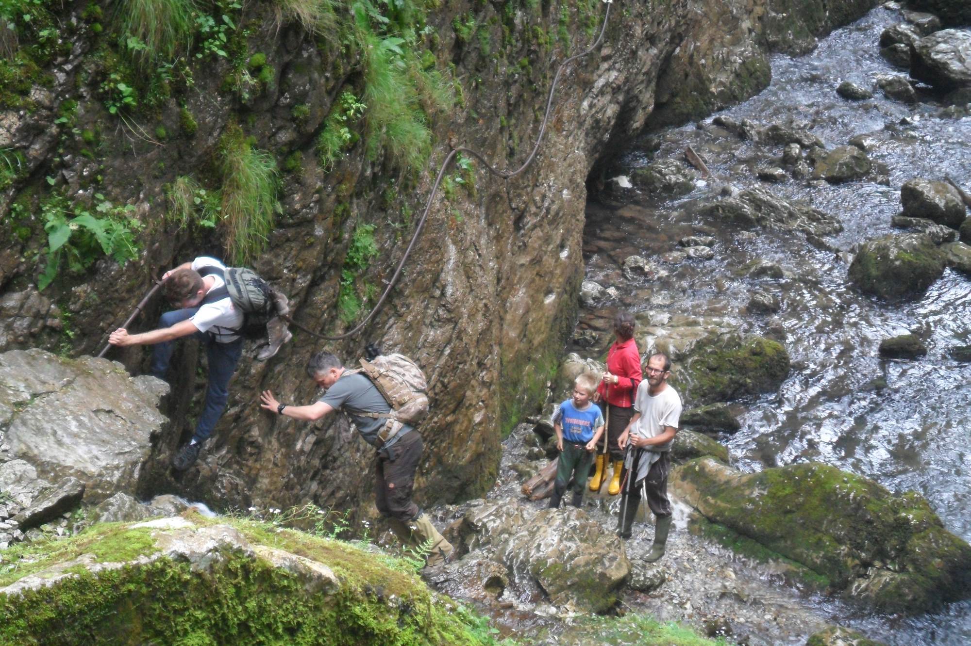 Az eddigi normál túránk itt lép át egy másik dimenzióba. A következő kevesebb mint 1km-en több mint 200 métert emelkedünk. Mindezt láncokkal, drótkötelekkel biztosított kitett veszélyes úton. Kellő erő, ügyesség és magabiztos hozzáállás szükséges, hogy a patak felett több méterrel, az összes végtagunkat használva haladni tudjunk. Mindenképpen megéri hiszen hatalmas sziklafalak, barlangnyílások, örvényüstös medencés, vízeséses patakmeder kíséri utunkat.